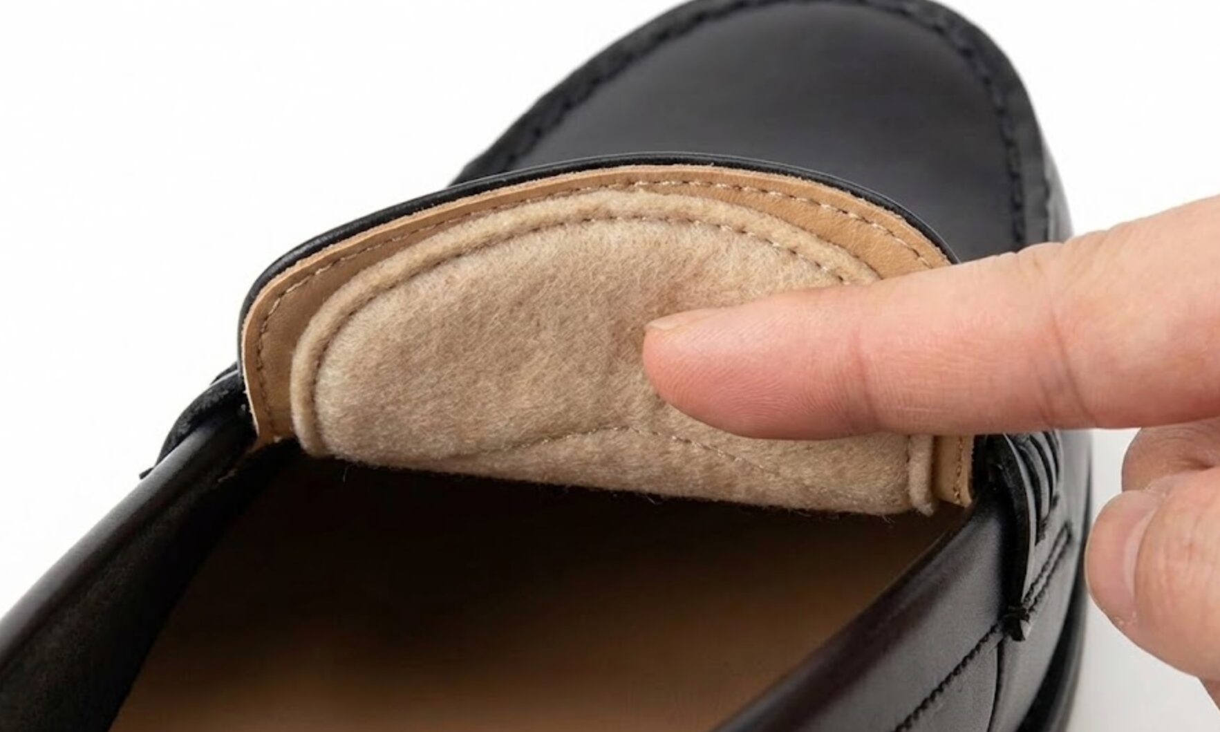 タンパッドとは、靴の「タン(ベロ)」と呼ばれる部分、つまり足の甲に当たる裏側に貼り付けるクッションのことです。意外に思われるかもしれませんが、これが踵脱げ対策の「隠れた主役」なんです。