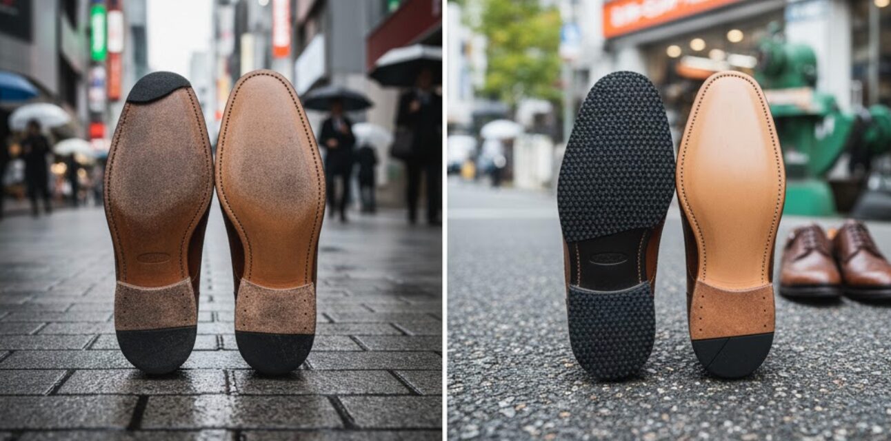 レザーソールが持つ独特の魅力と、その一方で実用面で考慮すべき点を、より掘り下げて解説します。このソールを選ぶことは、革靴との付き合い方を決めることにも繋がります。