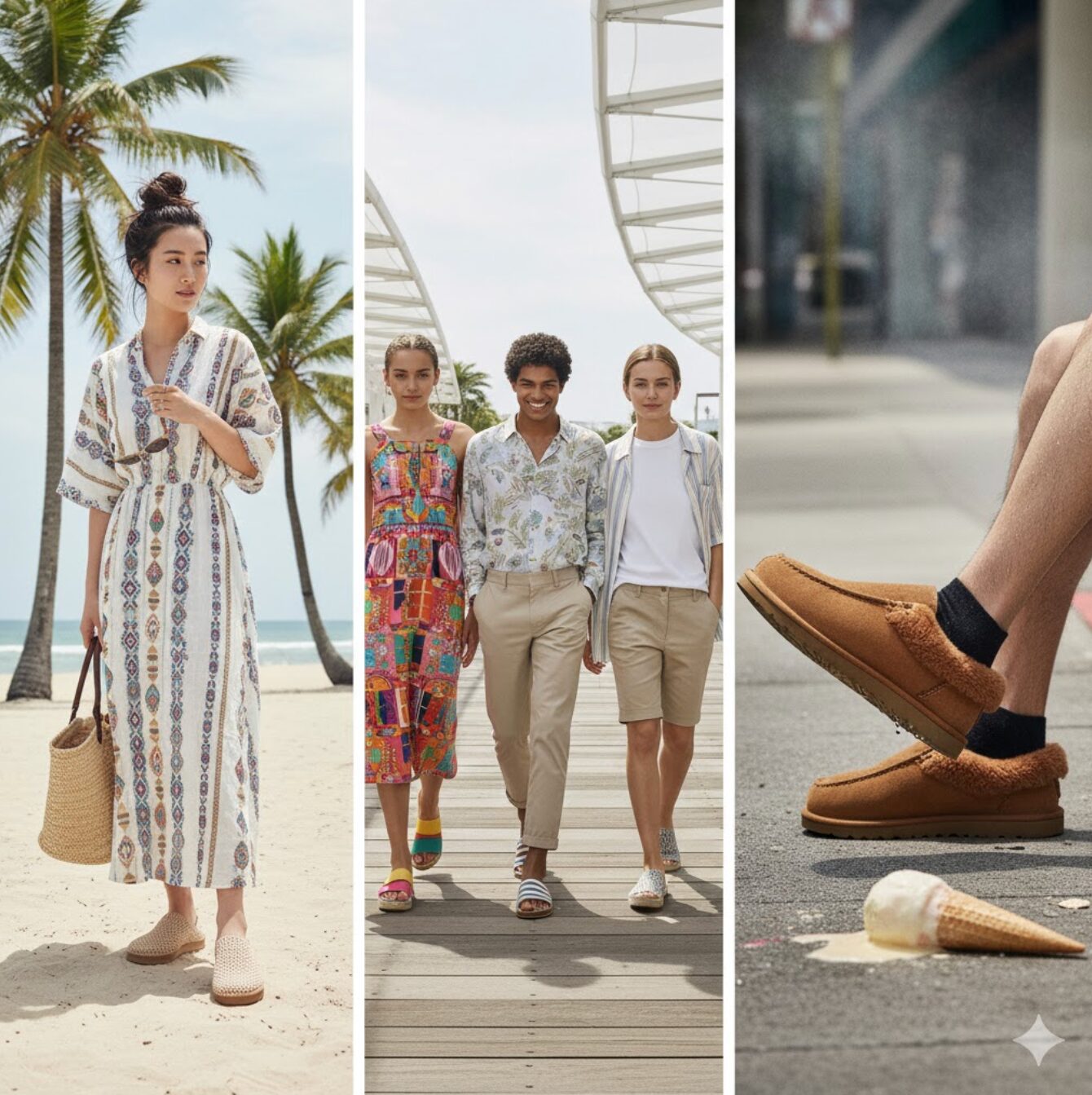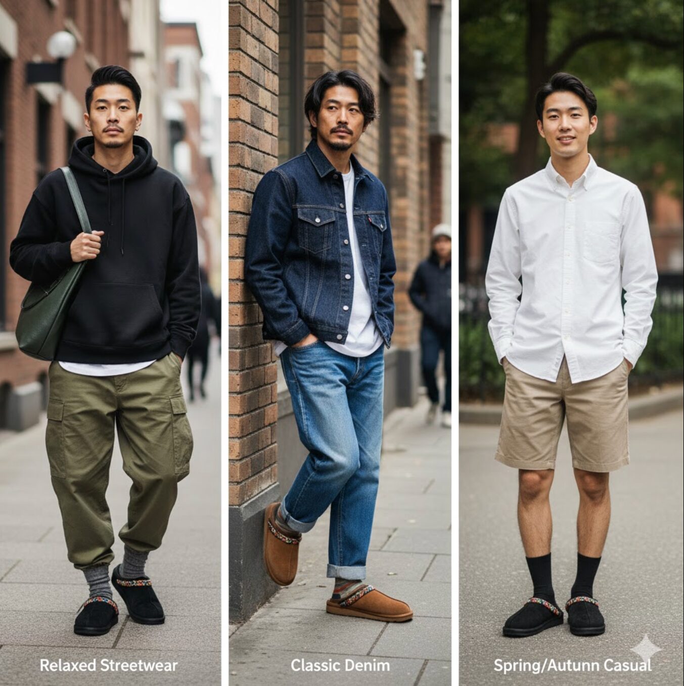 アグのスリッポン、特にブランドの代名詞でもあるシープスキン(ムートン)ライニングのモデルを夏に履くのは「おかしい」と感じる人は少なくありません。あの見た目の暖かさから、季節外れという印象を与えてしまうのは否めません。